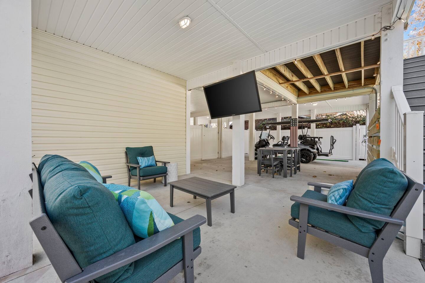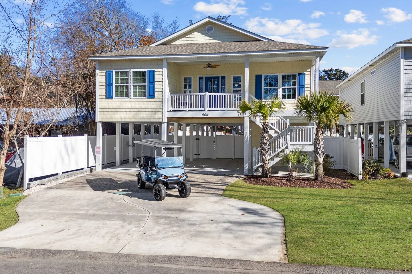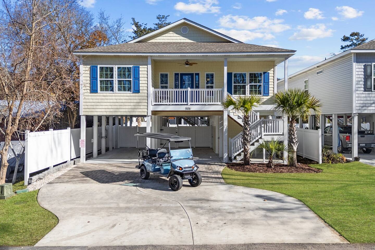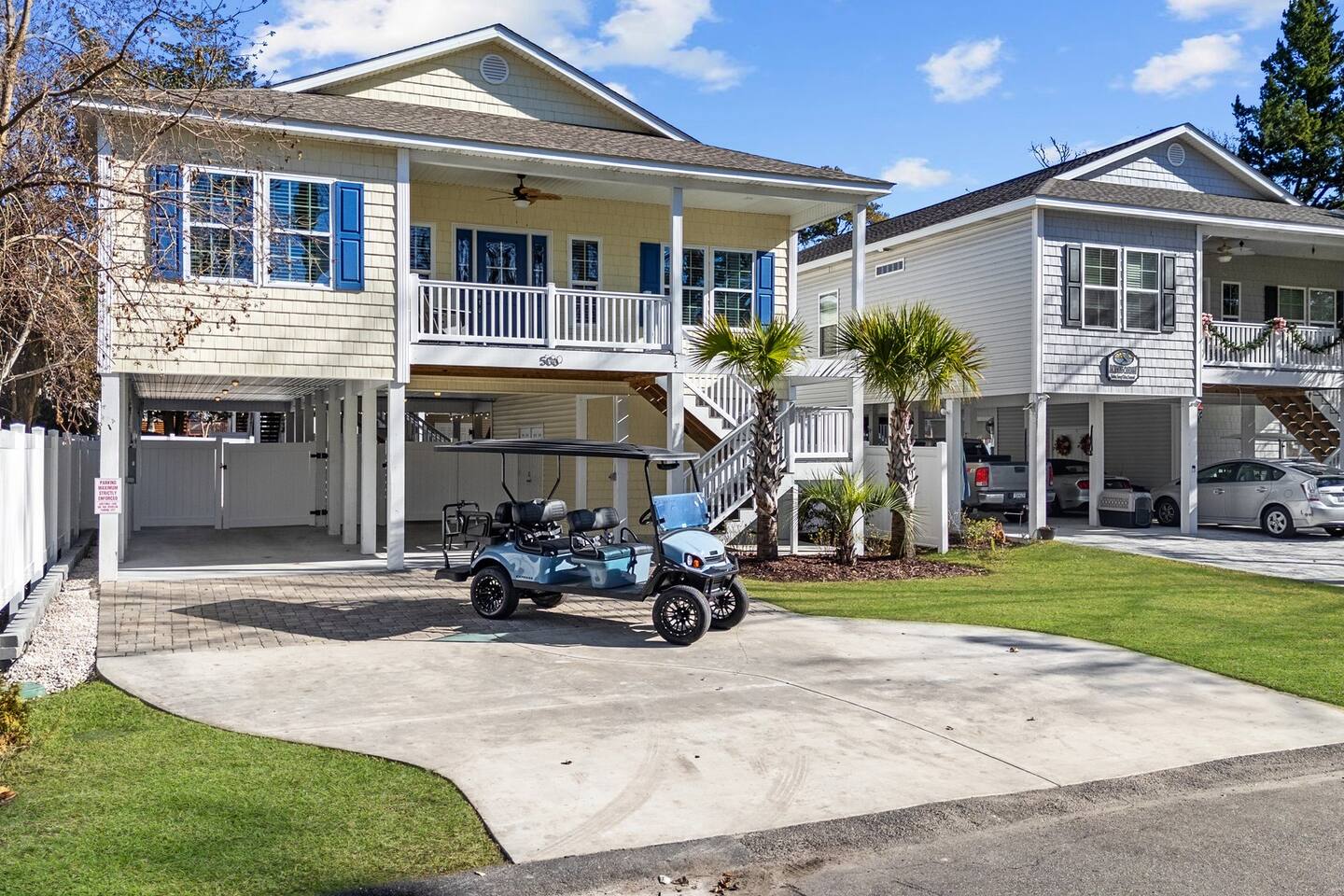 Please inquire about renting our on-site golf cart! The pool is heated using a heat pump. Gas heating is not an option in North Myrtle Beach due to the lack of natural gas service and city restrictions on buried propane tanks. Pool heating is weather dependent, and during cooler weather or cold nights, the pool may not maintain warm temperatures. As a general rule of thumb, outdoor temperatures typically need to stay in the 50s, including overnight, for the heat pump to effectively generate and maintain heat. In most years, the pool can be heated from late February or early March through mid-October, and sometimes longer if weather conditions cooperate.
